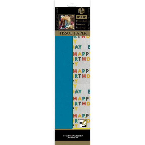 8 Sheet Tissue Paper 4 Birthday / 4 Turquoise